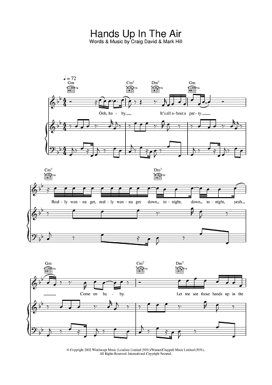 Digital Sheet Music for Hands Up In The Air by Craig David, Mark Hill scored for Piano/Vocal/Chords; id:377899