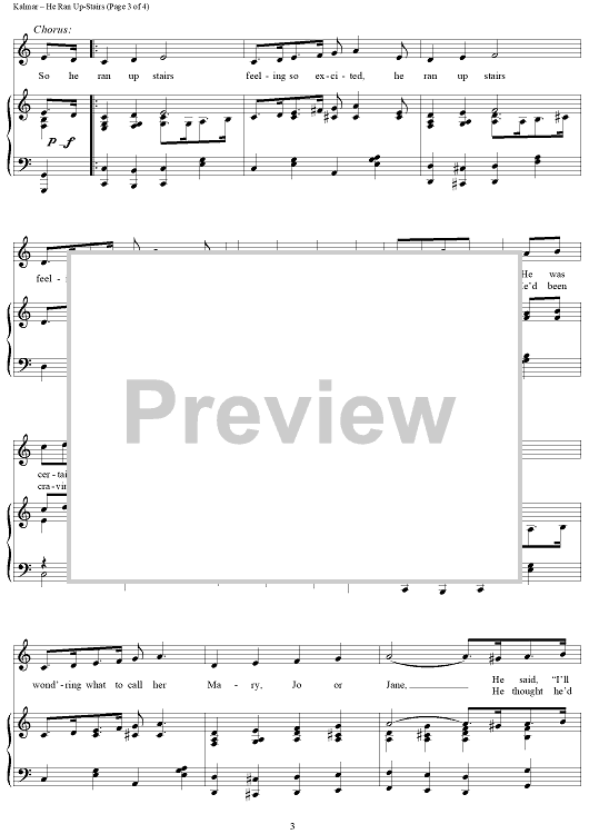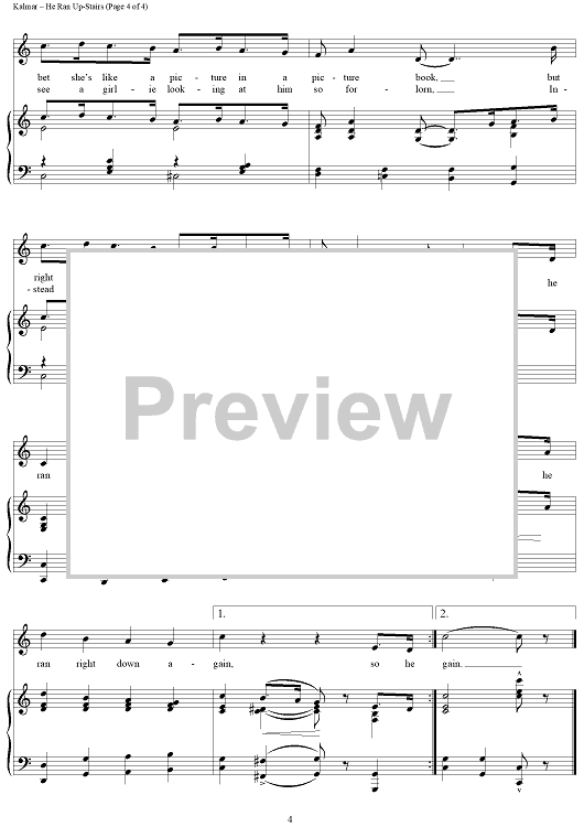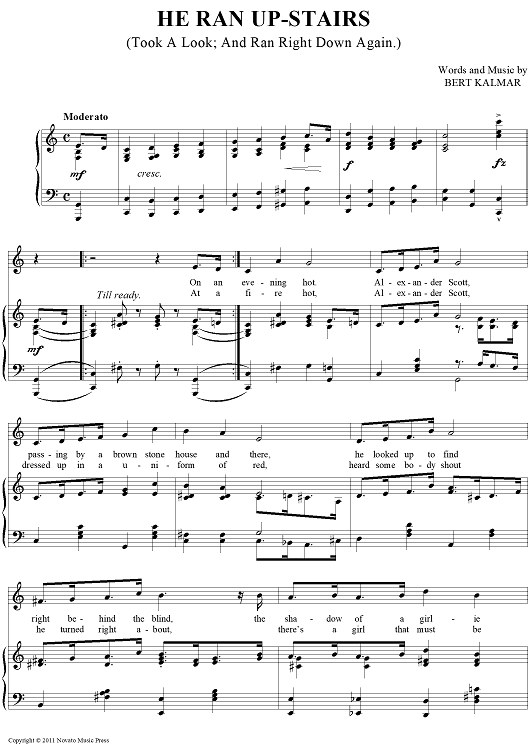 Digital Sheet Music for He Ran Upstairs (Took A Look; And Ran Right Down Again) by Bert Kalmar scored for Piano/Vocal; id:427404