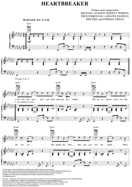 Digital Sheet Music for Heartbreaker by Michael Jackson, Rodney Jerkins, LaShawn Daniels, Fred Jerkins III, Norman Gregg, Mischke scored for Piano/Vocal/Chords; id:288920