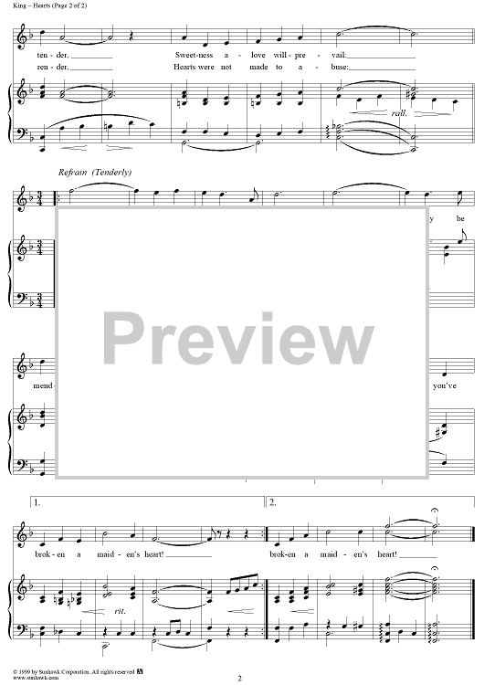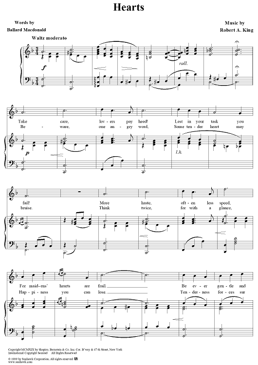 Digital Sheet Music for Hearts by Robert A. King, Ballard MacDonald scored for Piano/Vocal; id:256143
