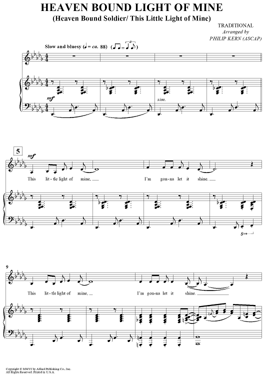 "Heaven Bound Light Of Mine (Heaven Bound Soldier / This Little Light of Mine)" Sheet Music by Traditional