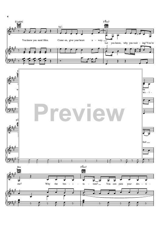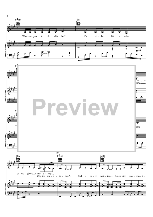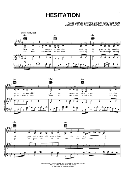 Digital Sheet Music for Hesitation by Tedd T, Stacie Orrico, Antonio Phelon scored for Piano/Vocal/Chords; id:372261