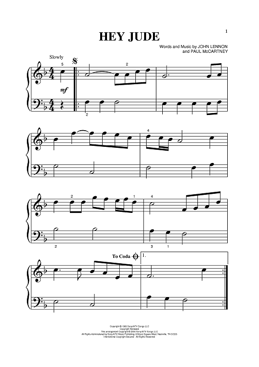 Digital Sheet Music for Hey Jude by Paul McCartney, The Beatles, John Lennon scored for Big Note Piano; id:373541