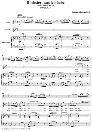 Digital Sheet Music for "Höchster, was ich habe", Aria, No. 5 from Cantata No. 39: "Brich dem Hungrigen dein Brot" - Piano Score by Johann Sebastian Bach scored for Soprano, Flute and Piano or Organ; id:304647