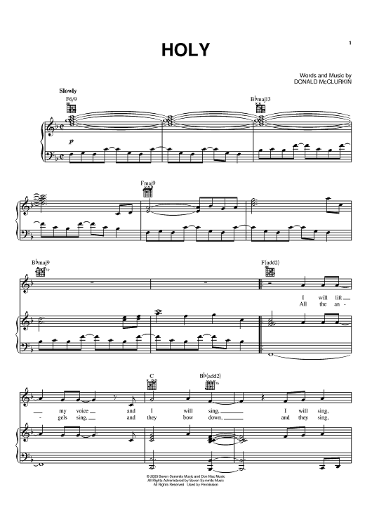 Digital Sheet Music for Holy by Donnie McClurkin scored for Piano/Vocal/Chords; id:372972