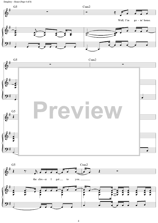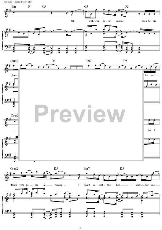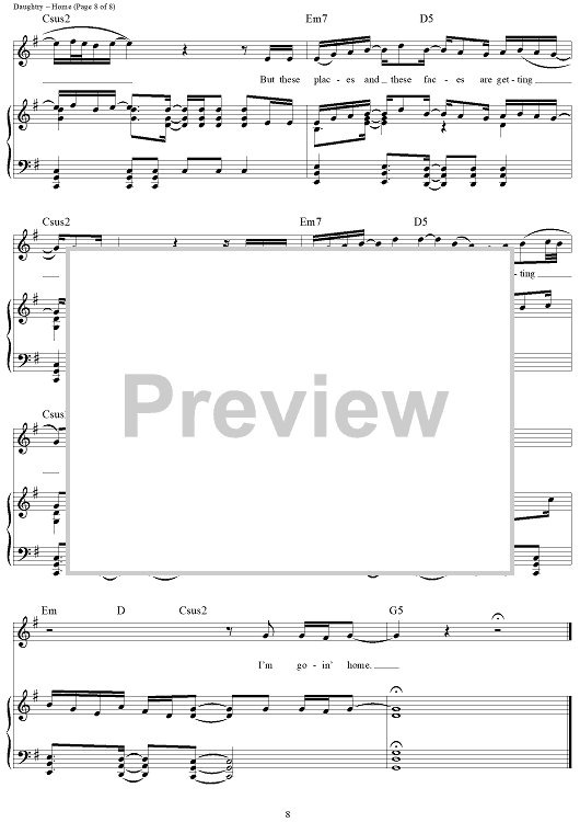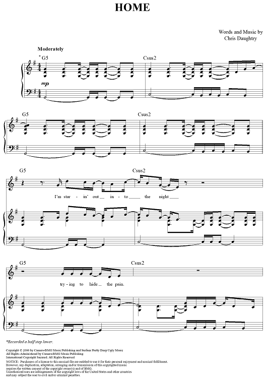 Digital Sheet Music for Home by Chris Daughtry, Daughtry scored for Piano/Vocal/Chords; id:361676