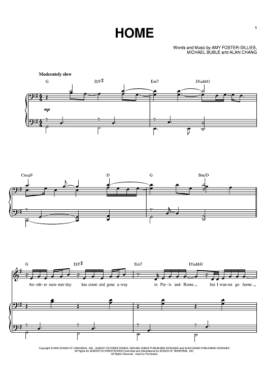 Digital Sheet Music for Home by Michael Buble, Alan Chang, Amy S. Foster scored for Piano/Vocal/Chords; id:383617