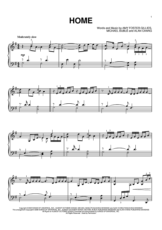 Digital Sheet Music for Home by Michael Buble, Alan Chang, Amy S. Foster scored for Piano Solo; id:389392