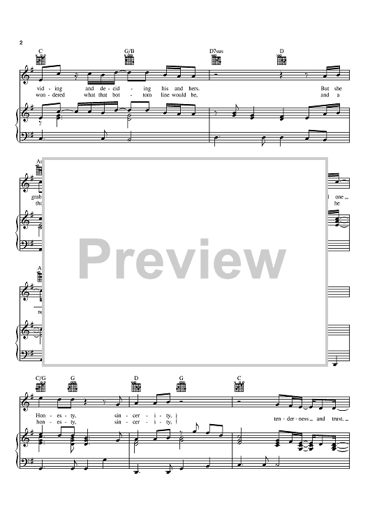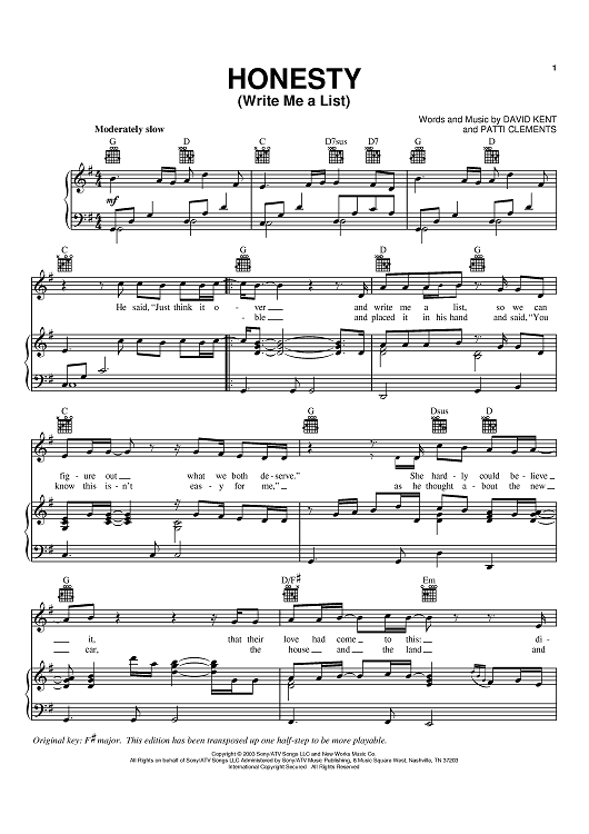 Digital Sheet Music for Honesty (Write Me A List) by David Kent, Rodney Atkins, Patti Clements scored for Piano/Vocal/Chords; id:372845