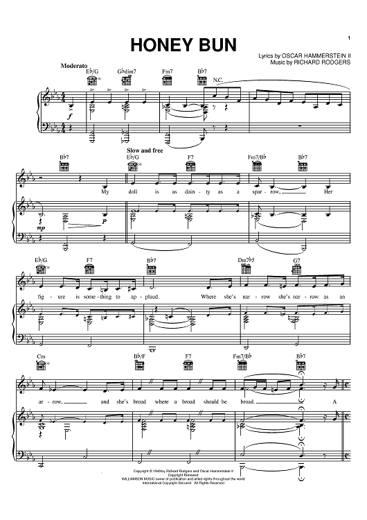 Digital Sheet Music for Honey Bun by Richard Rodgers, Oscar Hammerstein II scored for Piano/Vocal/Chords; id:369111