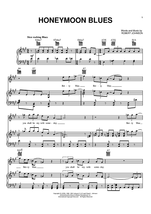 "Honeymoon Blues" Sheet Music by Robert Johnson