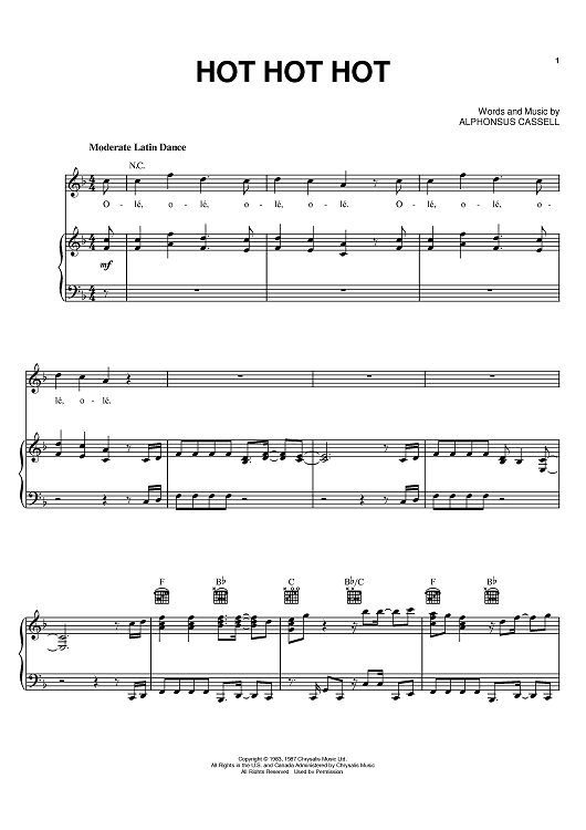 Digital Sheet Music for Hot Hot Hot by Alphonsus Cassell, Arrow, Buster Poindexter scored for Piano/Vocal/Chords; id:374066