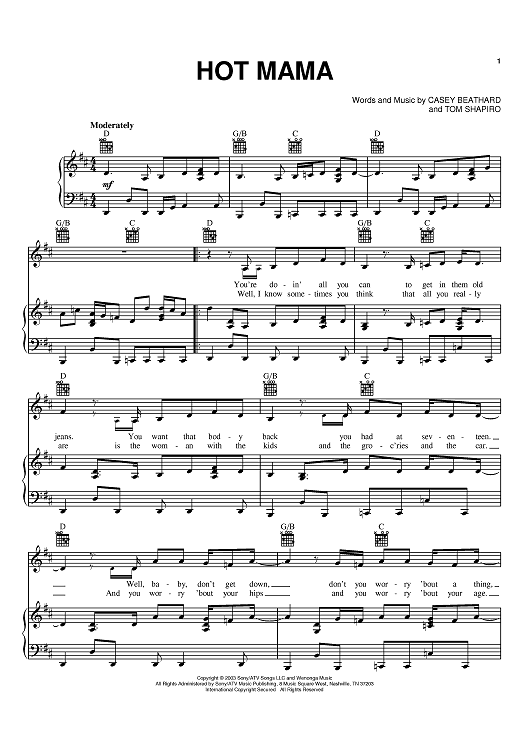 Digital Sheet Music for Hot Mama by Trace Adkins, Tom Shapiro, Casey Beathard scored for Piano/Vocal/Chords; id:373335