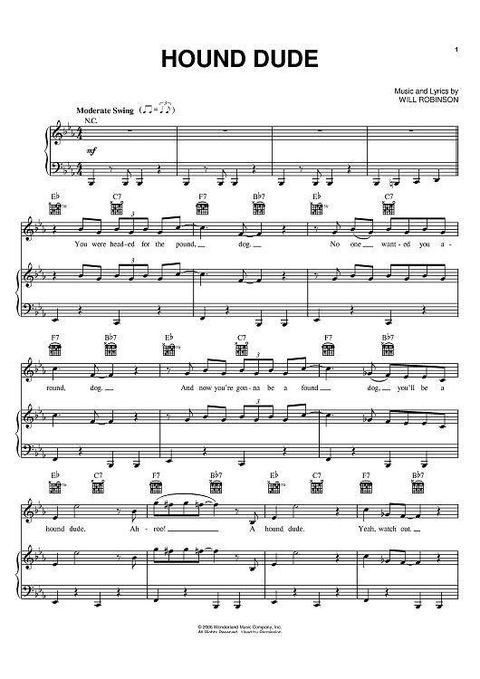 Digital Sheet Music for Hound Dude by Will Robinson, Josh Gracin scored for Piano/Vocal/Chords; id:395514