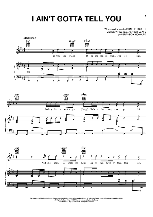 Digital Sheet Music for I Ain't Gotta Tell You by Ne-Yo, Brandon Howard, Alfred Lewis, Jeremy Reeves scored for Piano/Vocal/Chords; id:393553
