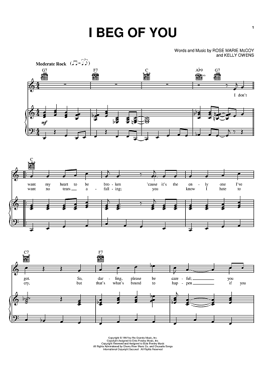 Digital Sheet Music for I Beg Of You by Elvis Presley, Rose Marie McCoy, Kelly Owens scored for Piano/Vocal/Chords; id:380314