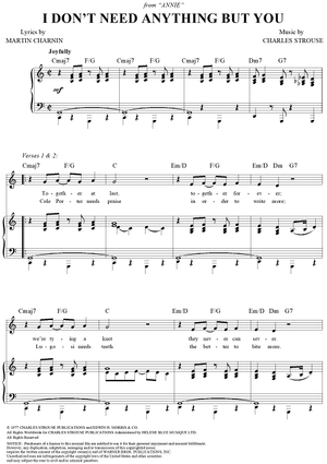 Digital Sheet Music for I Don't Need Anything But You by Charles Strouse, Martin Charnin scored for Piano/Vocal/Chords; id:124137
