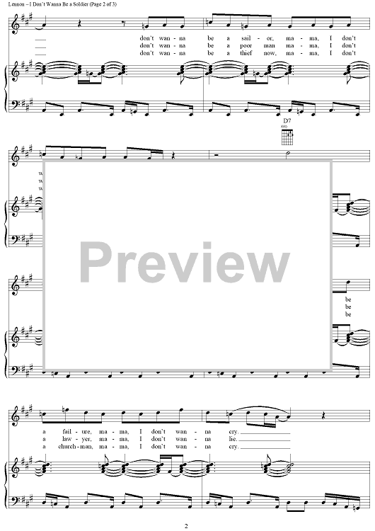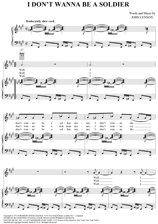 "I Don't Wanna Be a Soldier" Sheet Music by John Lennon