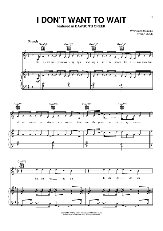 Digital Sheet Music for I Don't Want To Wait by Cole Paula scored for Piano/Vocal/Chords; id:368346