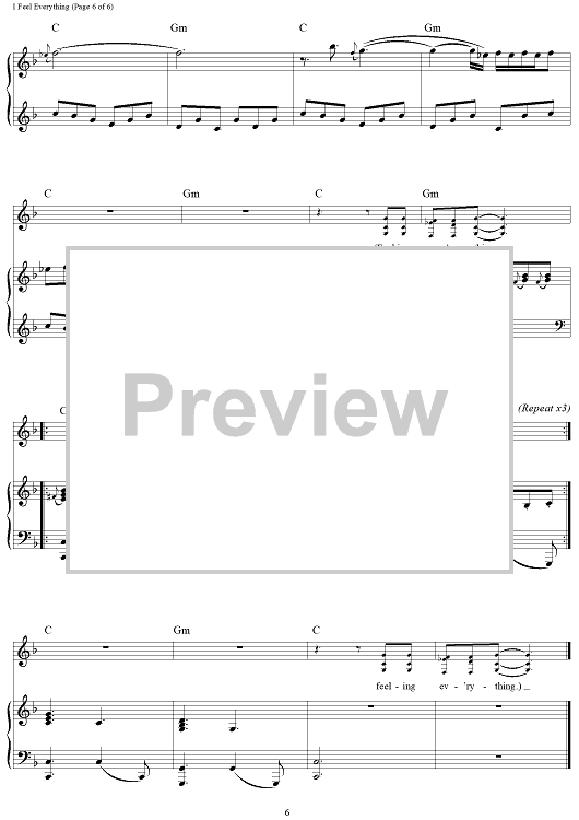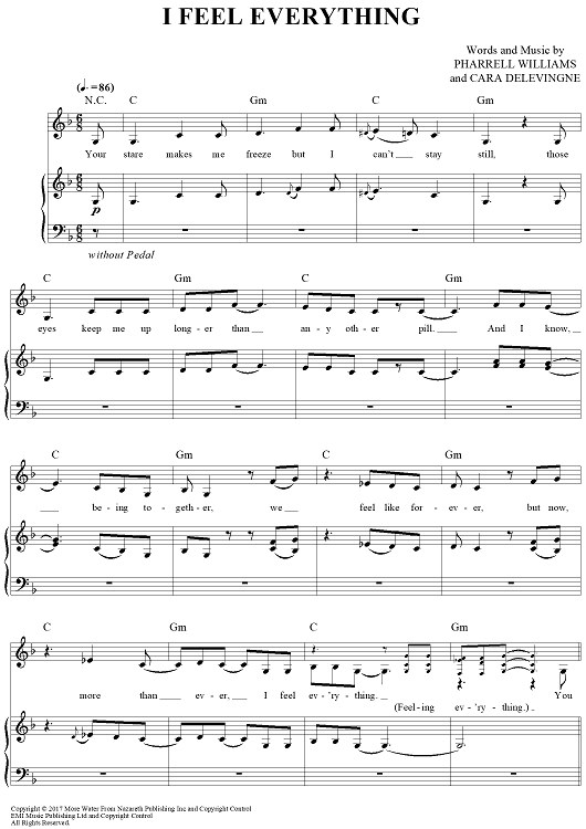 Digital Sheet Music for I Feel Everything by Pharrell Williams, Cara Delevingne scored for Piano/Vocal/Chords; id:465549