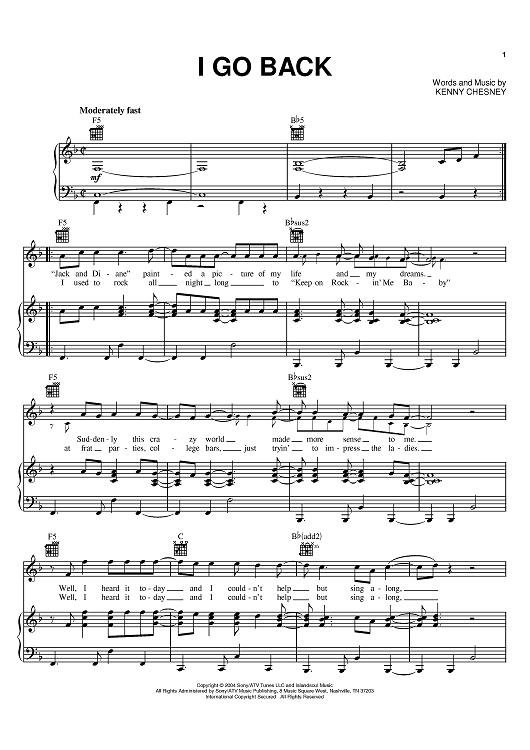 Digital Sheet Music for I Go Back by Kenny Chesney scored for Piano/Vocal/Chords; id:374481