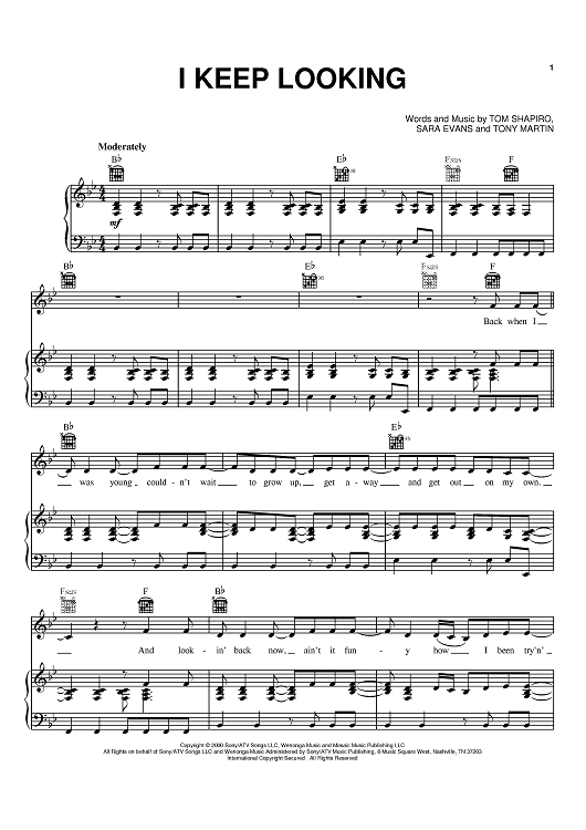 Digital Sheet Music for I Keep Looking by Tony Martin, Sara Evans, Tom Shapiro scored for Piano/Vocal/Chords; id:369040