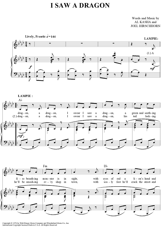 "I Saw A Dragon" Sheet Music by Al Kasha