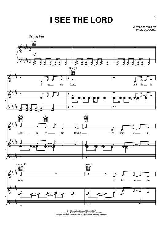 Digital Sheet Music for I See The Lord by Paul Baloche scored for Piano/Vocal/Chords; id:374091