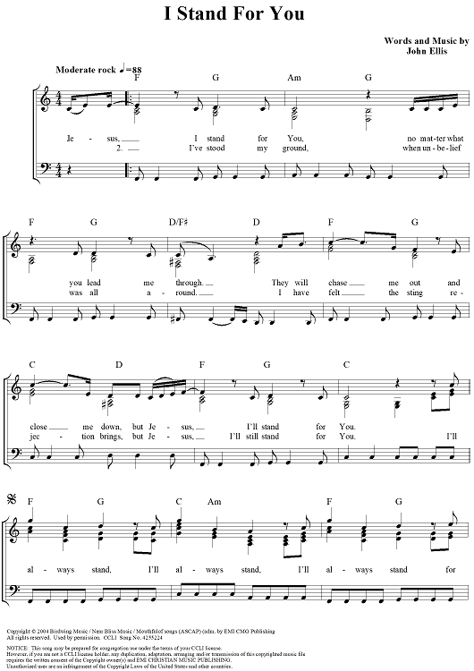 Digital Sheet Music for I Stand For You by John Ellis, Tree63 scored for Piano/Vocal/Chords; id:365127