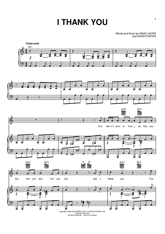 Digital Sheet Music for I Thank You by Isaac Hayes, David Porter, ZZ Top, Sam & Dave scored for Piano/Vocal/Chords; id:371043