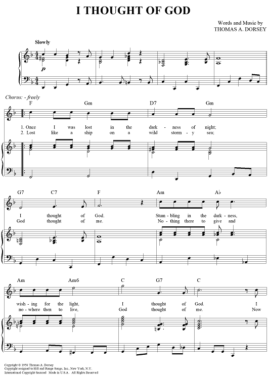 Digital Sheet Music for I Thought Of God by Thomas A. Dorsey scored for Piano/Vocal/Chords; id:362932