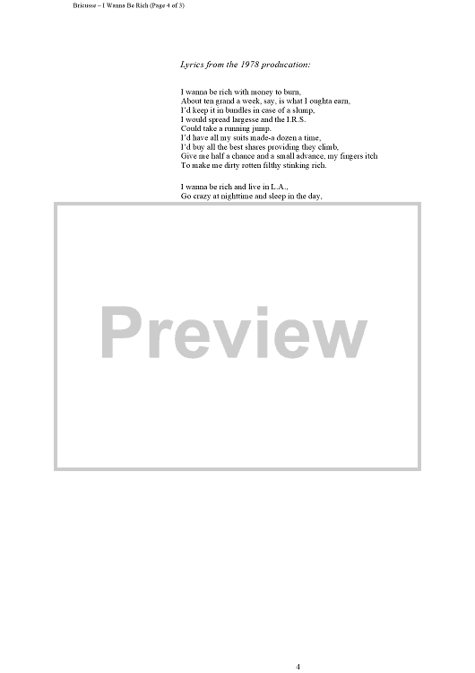 "I Wanna Be Rich" Sheet Music by Leslie Bricusse