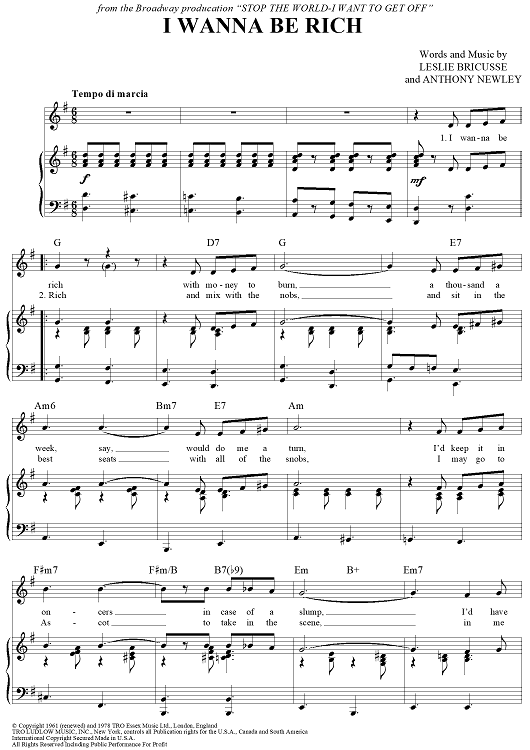 Digital Sheet Music for I Wanna Be Rich by Leslie Bricusse, Anthony Newley scored for Piano/Vocal/Chords; id:430326