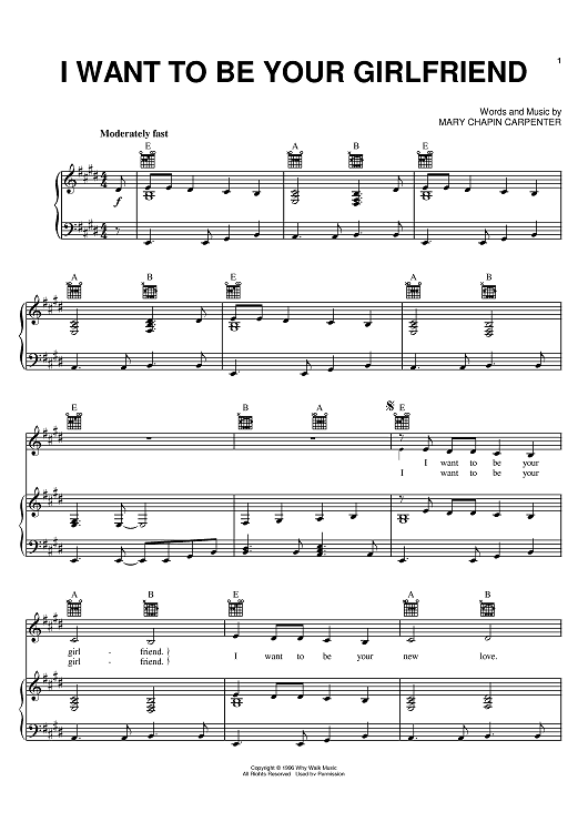 Digital Sheet Music for I Want To Be Your Girlfriend by Mary Chapin Carpenter scored for Piano/Vocal/Chords; id:395459