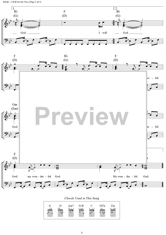 Digital Sheet Music for I Will Set My Face (Wonderful God) by Godfrey Birtill scored for Piano/Vocal/Chords; id:361986