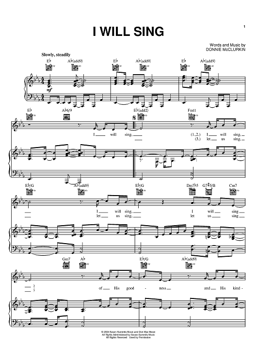 "I Will Sing" Sheet Music by Donnie McClurkin