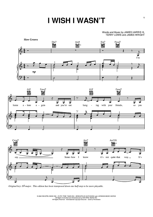 Digital Sheet Music for I Wish I Wasn't by Jimmy Jam, Terry Lewis, James Wright, Heather Headley scored for Piano/Vocal/Chords; id:371825
