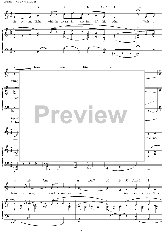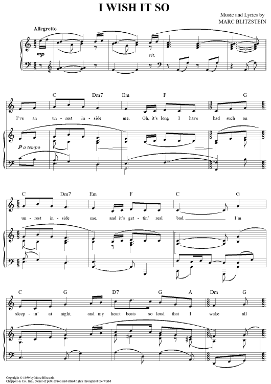 Digital Sheet Music for I Wish It So by Marc Blitzstein scored for Piano/Vocal/Chords; id:359510