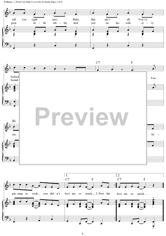 Digital Sheet Music for I Wish You Didn't Love Me So Much by Hank Williams scored for Piano/Vocal/Chords; id:361888
