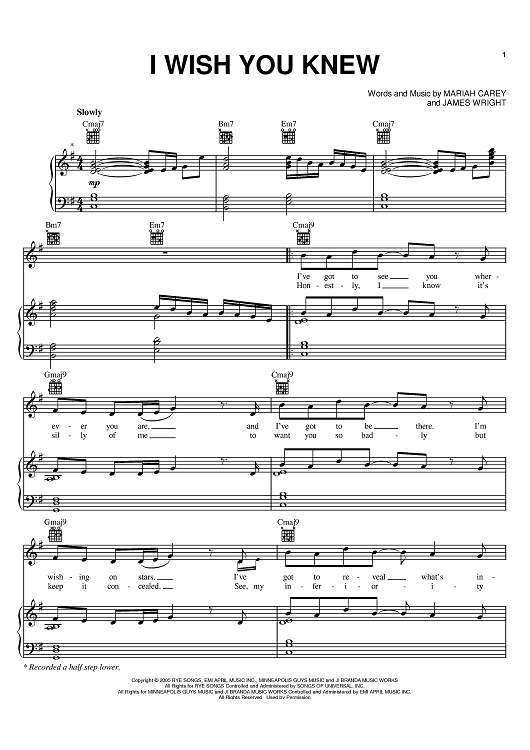 Digital Sheet Music for I Wish You Knew by Mariah Carey, James Wright scored for Piano/Vocal/Chords; id:386416
