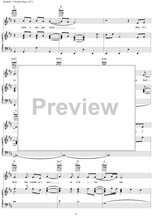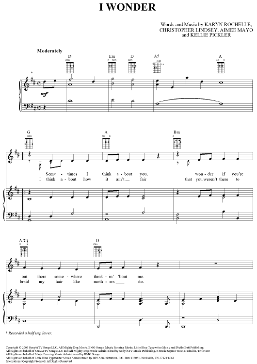 Digital Sheet Music for I Wonder by Aimee Mayo, Christopher Lindsey, Karyn Rochelle, Kellie Pickler scored for Piano/Vocal/Chords; id:365338
