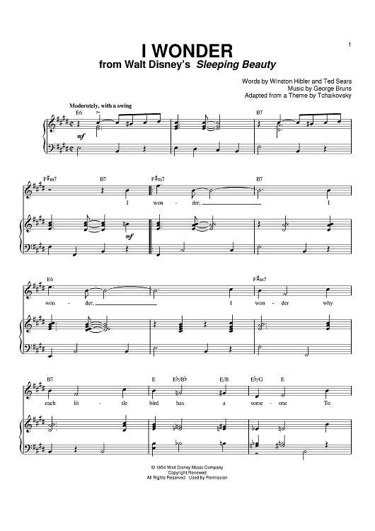 Digital Sheet Music for I Wonder by George Bruns, Mary Costa, Winston Hibler, Ted Sears scored for Piano/Vocal/Chords; id:381224