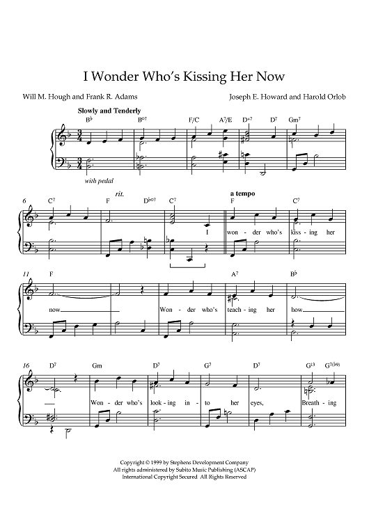 Digital Sheet Music for I Wonder Who's Kissing Her Now by Joseph E. Howard, William M. Hough, Frank R. Adams, Harold Orlob scored for Piano; id:370001