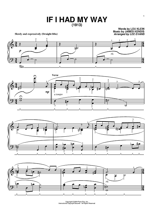 Digital Sheet Music for If I Had My Way by James Kendis, Lou Klein scored for Piano; id:374382