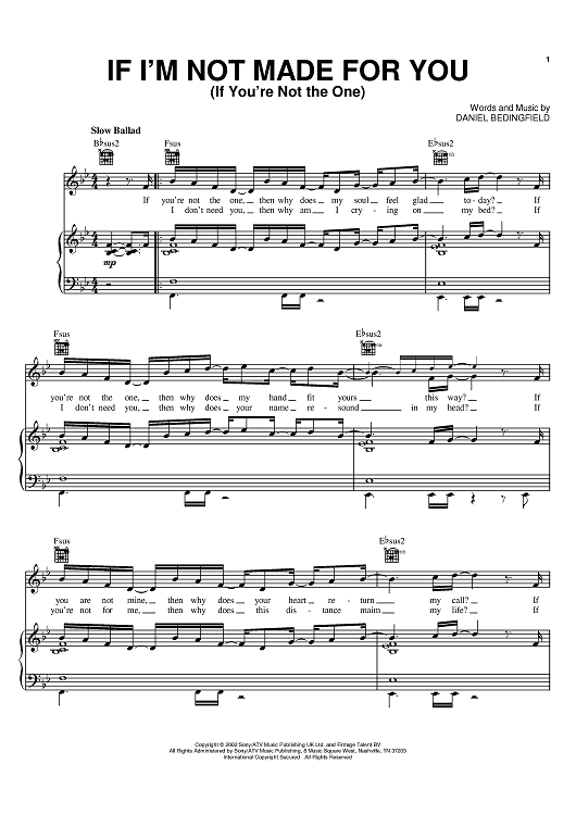 Digital Sheet Music for If I'm Not Made For You (If You're Not The One) by Daniel Bedingfield scored for Piano/Vocal/Chords; id:371379