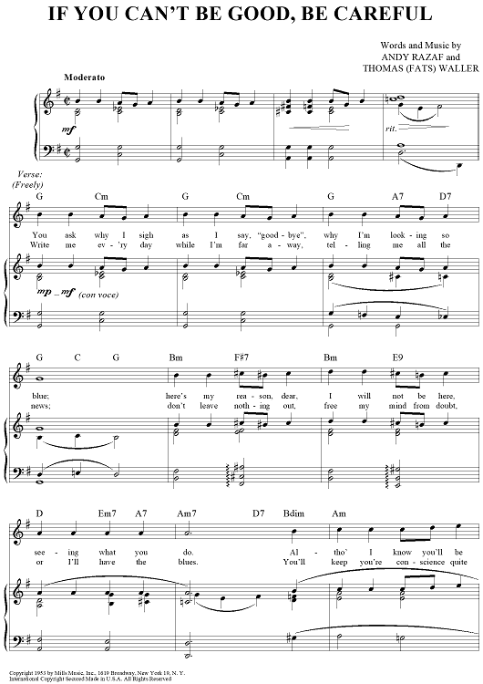 Digital Sheet Music for If You Can't Be Good, Be Careful by Fats Waller, Andy Razaf, Thomas Waller scored for Piano/Vocal/Chords; id:427400