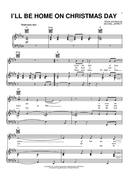 Digital Sheet Music for I'll Be Home On Christmas Day by Elvis Presley, Michael Jarrett scored for Piano/Vocal/Chords; id:368264