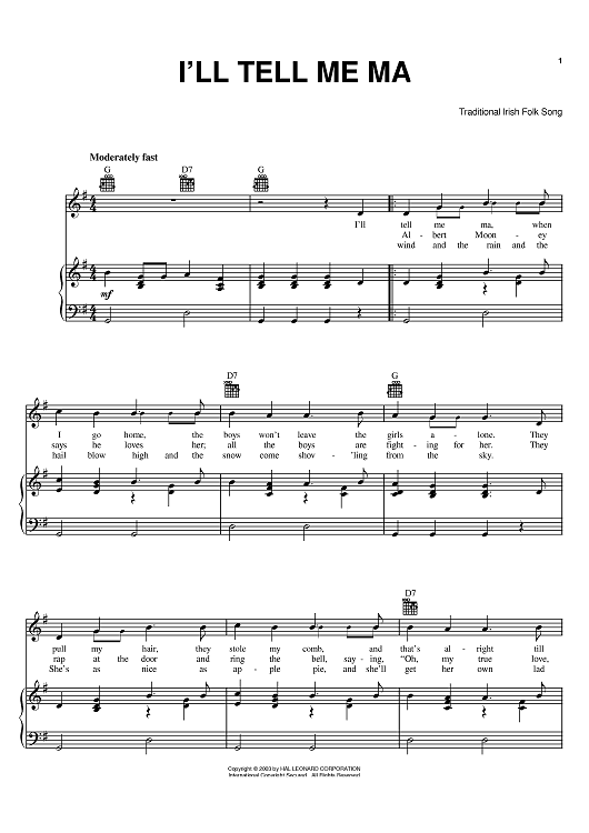 Digital Sheet Music for I'll Tell Me Ma by scored for Piano/Vocal/Chords; id:373096