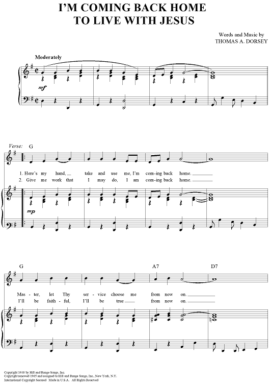 Digital Sheet Music for I'm Coming Back Home To Live With Jesus by Thomas A. Dorsey scored for Piano/Vocal/Chords; id:363831