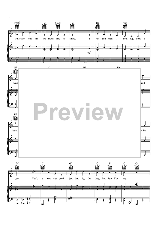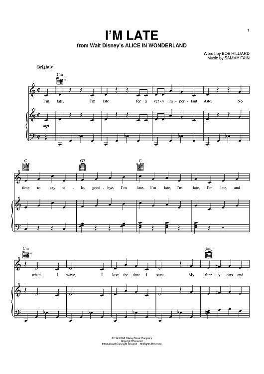 Digital Sheet Music for I'm Late by Sammy Fain, Bob Hilliard scored for Piano/Vocal/Chords; id:370839